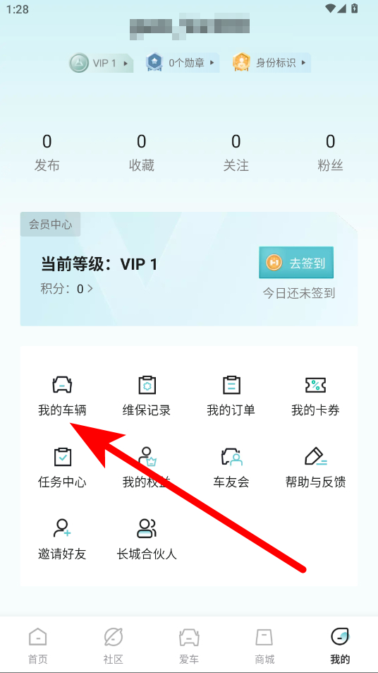 2、在个人界面里,点击我的车辆选项,进入车辆管理页面。
