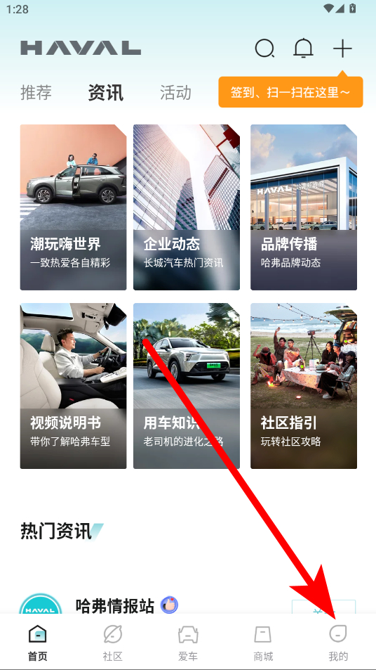 1、打开哈弗智家APP,在首页点击底部导航栏中的我的,进入个人界面。