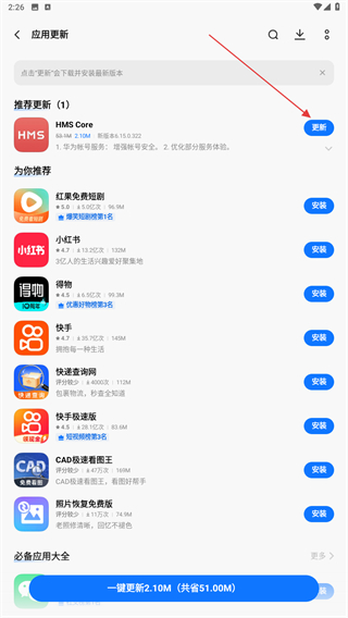 4、进入应用更新的页面内,会显示可更新的软件,点击右侧更新的按钮即可。