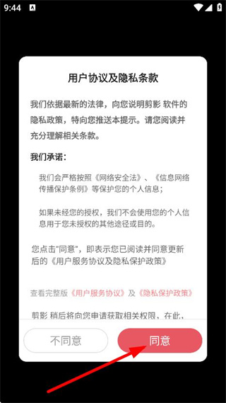 1、在用户协议及隐私条款弹窗中,点击同意,进入界面。