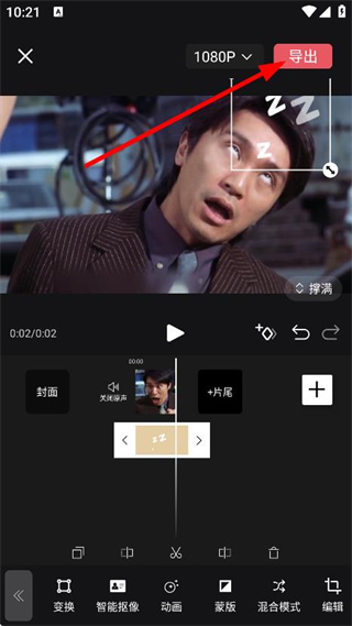 4、在视频编辑页面,完成编辑操作后,点击导出,即可导出编辑好的视频。