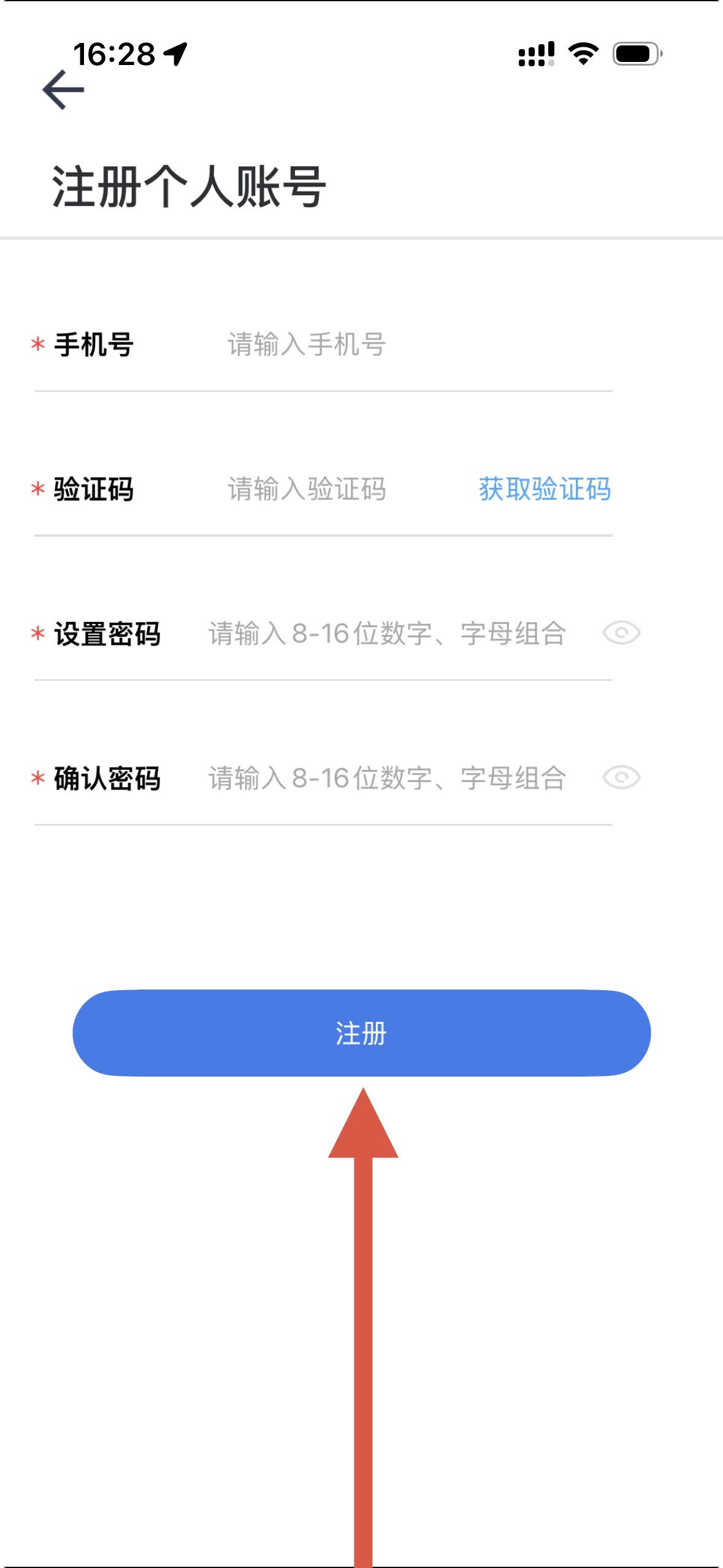 4、在注册界面,按提示输入相关信息后,点击注册。