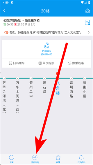 4、即可查看该公交线路反向的站点与实时运营情况。