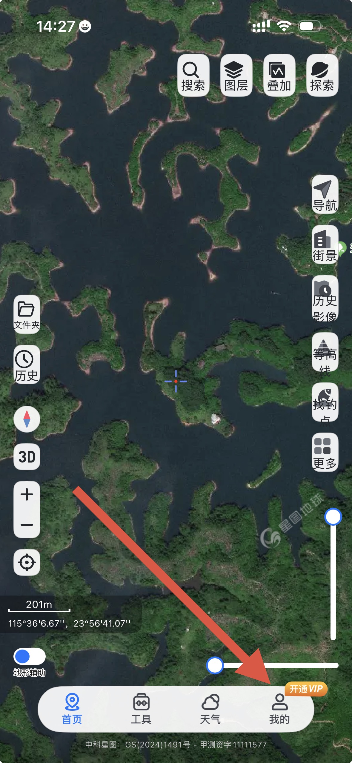 1、打开新知卫星地图APP,点击底部导航栏中的我的选项,进入个人页面。