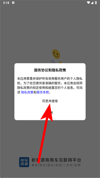 1、打开电车资源APP,在弹窗中点击同意并使用。