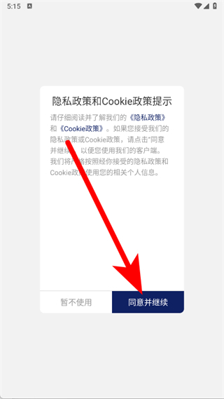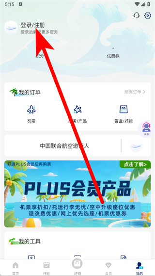 1、打开中国联合航空,在弹窗中点击同意并继续。