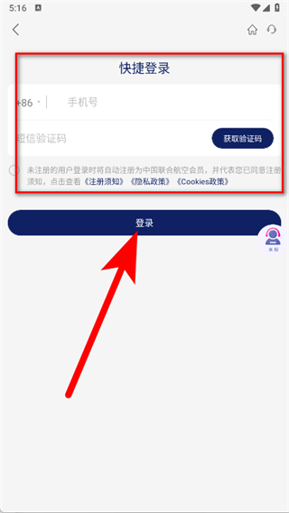 4、输入手机号,点击获取验证码,输入验证码后点击登录,完成注册。
