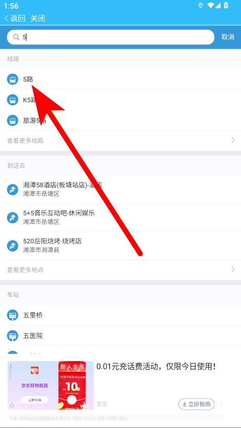 2、在公交查询页面的搜索框,输入要查询的公交线路、车站或地点。
