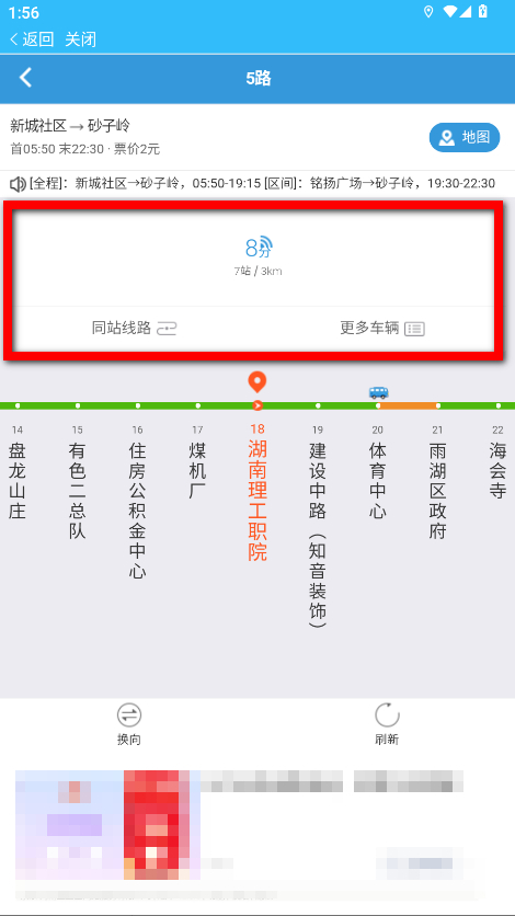 4、在线路详情页面,即可查看公交的实时位置、到站时间等信息。