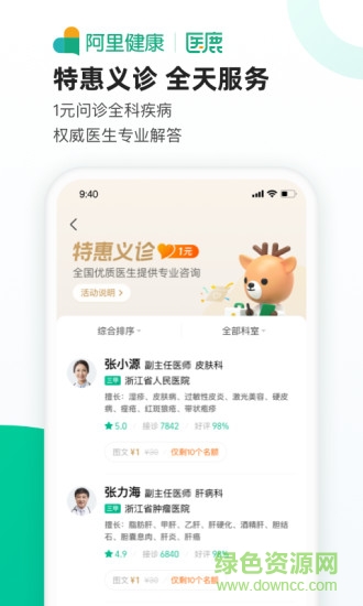 阿里健康全新升级为医鹿APP,成为你信赖的医疗在线服务平台。成人儿童疫苗精准推荐,接种提醒守护全家健康。特惠义诊全面上线,0元问诊全科疾病,权威医生专业解答。医鹿在手,随时随地问诊购药,全家的健康助手。医鹿全面为用户提供7*24小时在线问诊、三甲好医生咨询、便捷本地医院等全面服务,汇集海量名医权威信息,医疗信息搜索安全无广告,还能体验挂号&疫苗&体检&购药等健康管理一站式生活服务。