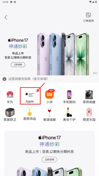 2、在商城页面,点击Apple品牌分类,进入Apple产品专区。