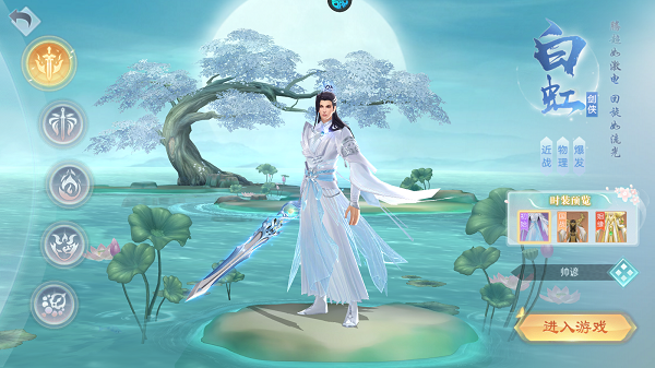 游戏设置了白虹、邀月、灼颜、幽夜、菩提五大职业。