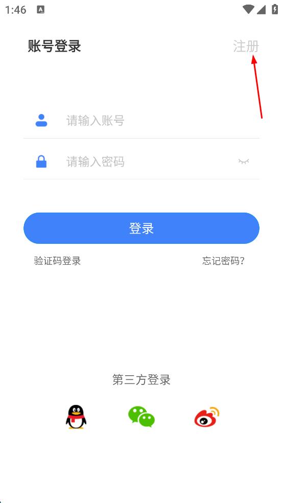 2、在账号登录页面,点击注册,进入账号注册页面。