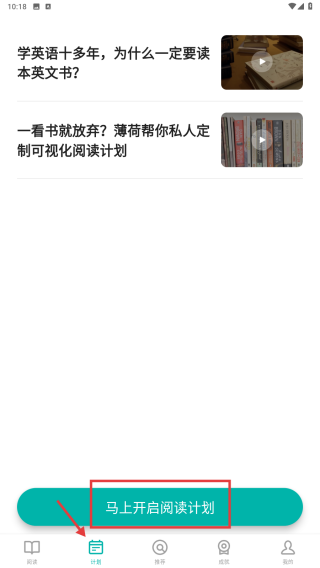 1、打开英语阅读类APP,点击底部开读选项,进入阅读页面。