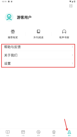 4、若需查看帮助与反馈、关于我们或设置等信息,点击底部我的选项,进入个人中心页面进行查看。