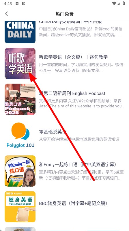 4、进入内容列表后,选择想要学习的条目,点击即可开始学习。