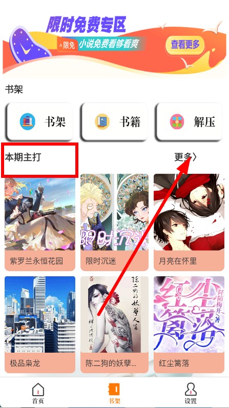 2、在书架页面,找到本期主打板块,点击其右侧的更多。