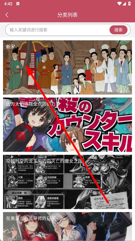 3、进入分类列表页面后,选择感兴趣的小说并点击。