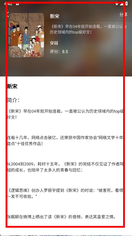 4、进入小说详情页面后,查看小说简介等信息,点击阅读按钮 ,就能开始免费阅读该小说。