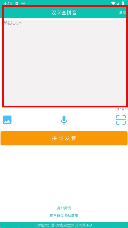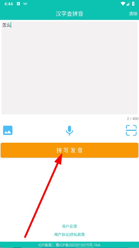 1、打开APP,在汉字查拼音输入框中输入要查询的汉字。
