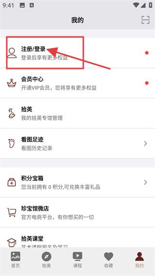 3、在个人页面,点击注册登录,进入登录相关页面。