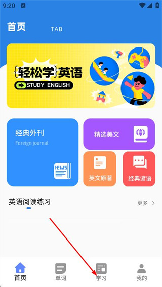 1、在APP的首页,点击底部的学习,进入学习页面。