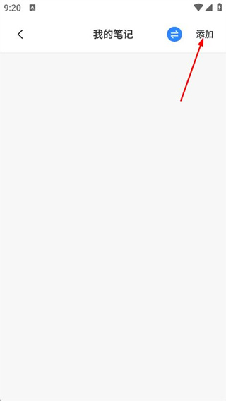 3、在我的笔记页面,点击右上角的添加,进入笔记编辑页面。