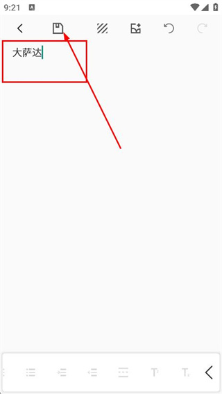 4、在笔记编辑页面,输入笔记内容后,点击保存图标,保存笔记。