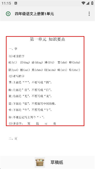4、在单元知识要点页面,可查看第一单元 知识要点的具体内容。