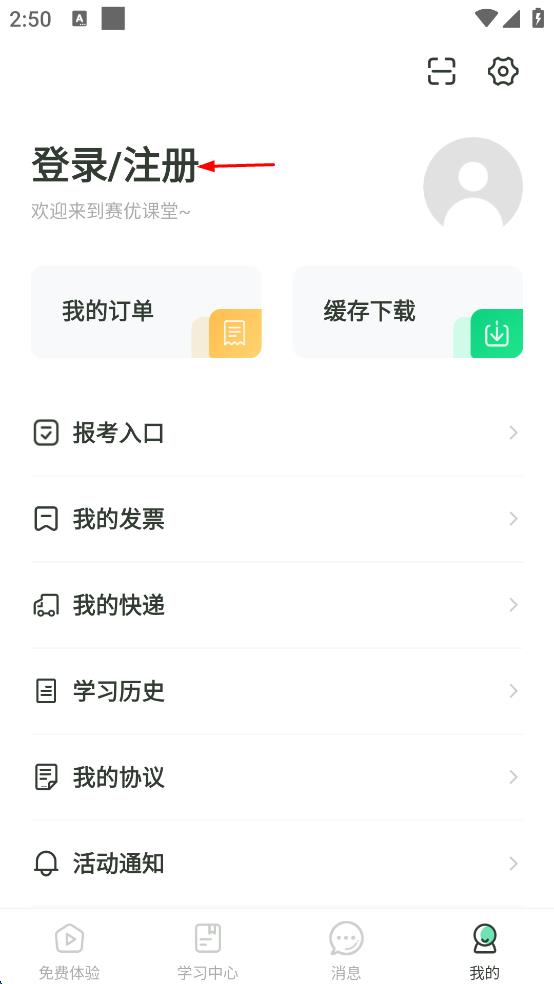 2、在赛优课堂首页,点击右下角我的,进入个人页面。