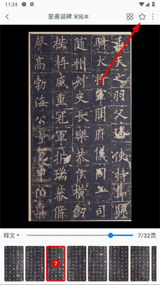 4、进入碑帖查看页面后,点击页面右上方的收藏图标,即可完成对该碑帖的收藏。