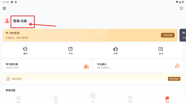 2、在个人中心,点击登录/注册选项,进入登录注册页面。