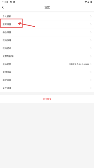 3、在设置页面,点击账号设置选项,进入账号设置界面。