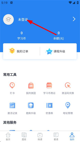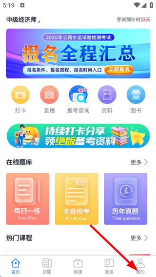 1、在速题库首页中,点击底部我的,进入个人页面。