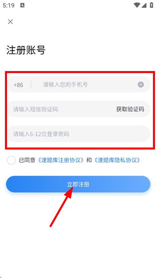 4、在注册账号页面,输入手机号、验证码、密码,点击立即注册,完成注册。