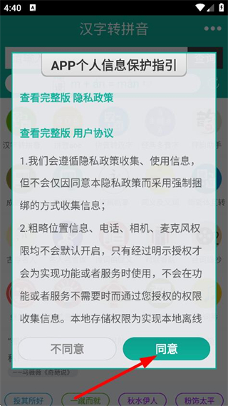 1、在APP个人信息保护指引弹窗中,点击同意,进入软件主界面。