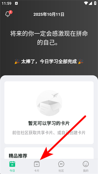 1、在滑记的主界面,需要点击底部卡片按钮,进入卡片盒页面。