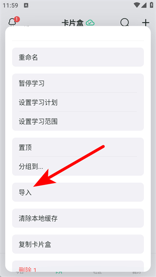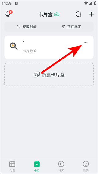 2、在卡片盒的页面,点击卡片盒右侧的…按钮,弹出操作菜单。