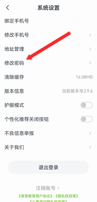 3、在系统设置的页面,点击修改密码按钮,进入密码修改的页面。