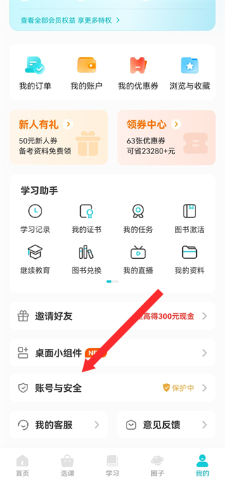 1、在我的页面,点击账号与安全,进入账号安全设置的页面。