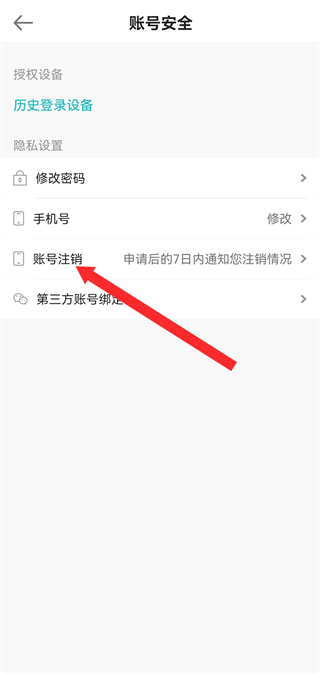 2、在账号安全设置页面,点击账号注销,进入注销信息填写页面。