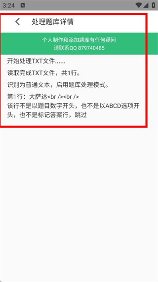 4、选择文档后,进入处理题库详情页面,可查看题库处理的相关信息。