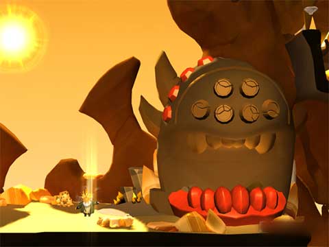 第六关的最后一关已经过了,接下来,只要过了整个游戏的最终关卡就行了。过了大树的关卡之后,会自动传送到Boss面前。Boss一开始会向你扔石头,不要着急,这个还是比较容易躲的,等Boss扔了三次石头的时候戴上面具,用太阳射线照射眼睛的部分,另一边眼睛也一样,要等扔三次石头。两边的眼睛都射瞎之后,会变成气球掉下来。