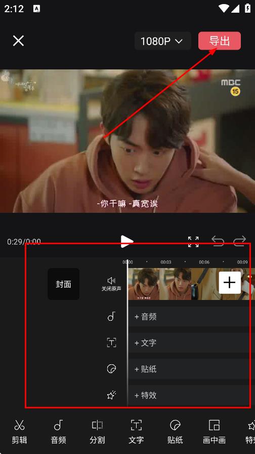 3、在视频编辑页面,对视频进行编辑后,点击导出,弹出导出提示弹窗。