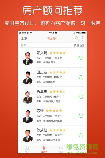 麦田在线app是一款以打造北京二手房交易为中心的房产app,依据客户找房需求,自动计算房源与客户预期的匹配度,从而智能精准地推荐房源,客户可以通过私信功能与麦田房产顾问直接沟通,且私信支持一键推送房源,同时保护用户隐私,应用支持客户与房产顾问双重身份登录。