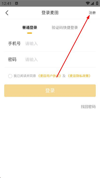 1、打开麦田在线app,点击底部导航栏最右侧我的。