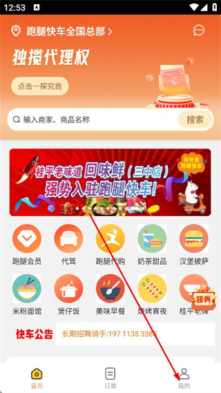 1、打开跑腿快车,点击底部导航栏最右侧我的选项。