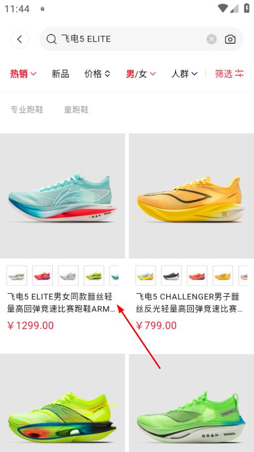 4、选择心仪的商品,比如飞电5ELITE比赛跑鞋,点击该商品。