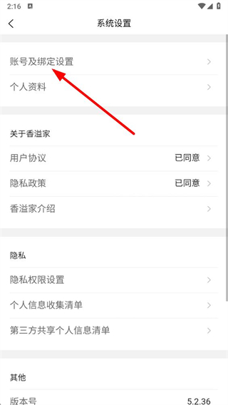3、在系统设置界面中,找到并点击账号及绑定设置选项。