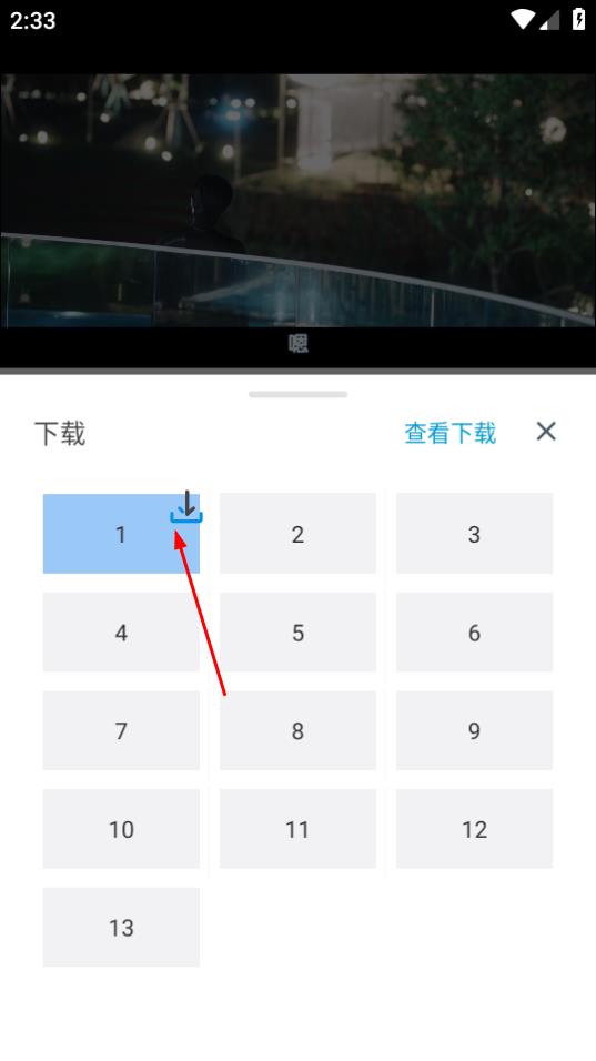 4、在剧集选择下载页面,点击要下载的剧集,如1,开始下载。